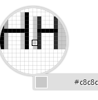 Disegnando un font scalabile si ha a che fare solo con due colori: nero e bianco, ossia colore del font e colore dello sfondo. Qui invece vediamo che sono presenti varie tonalità di blu intorno alle aste. Questo perché il software ha applicato una complicata formula per ricondurre una forma netta come quella messa a punto dal font designer ad una forma sfumata, in grado di dare all’occhio umano l’impressione della forma originaria.